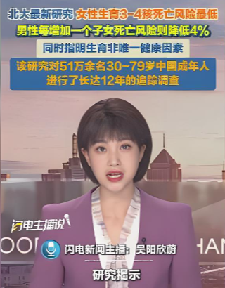 北大一项跟踪51万东谈主的参谋刚刷屏:生养3-4个孩子的女性去世风险最低,男性每多生一个娃,去世风险就降4%。
